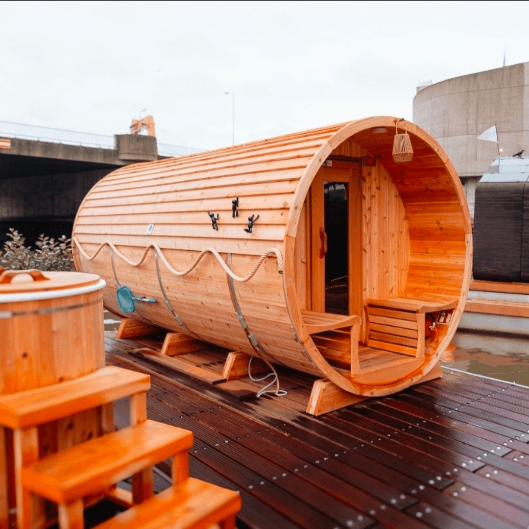 Ontspan midden in de stad in de sauna van Wikkelboat/Harbouw Welness aan de Wijnhaven. Met uitzicht over het water en de skyline van Rotterdam kom je hier volledig tot rust. Maak je wellness-ervaring compleet met een verwarmde jacuzzi en een verfrissend ijsbad voor de ultieme combinatie van ontspanning en herstel.